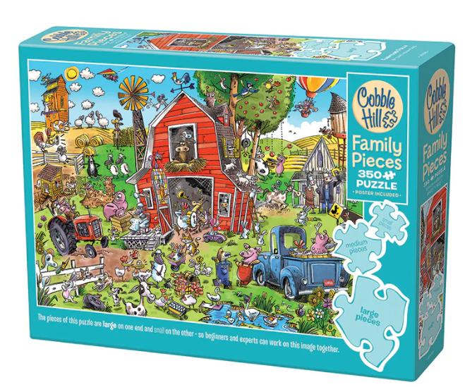 Family Pieces 350 puzzles include three different piece sizes so puzzlers of all skill levels can collaborate. The large pieces are on one end of the puzzle, the medium in the middle, and the small pieces on the other end. While these puzzles are designed for families, don’t let that stop you from enjoying it on your own! It’s also a great option for newer puzzlers who want to step up from a 275 piece puzzle, but not ready to jump into a 500 or 1000 piece. As well, skilled puzzlers enjoy this piece count when they need a little snack break.