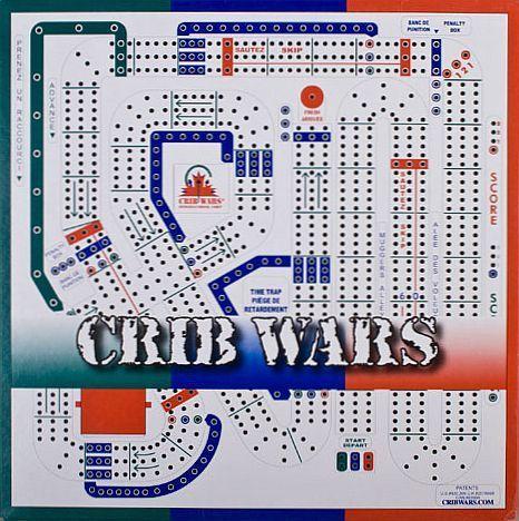 A plastic cribbage board like no other, Crib Wars has 363 holes from start to finish instead of the usual 121. Along the twisting track are slide-aheads, reverse loops, shortcuts and setbacks that the players must follow if they land on certain spaces via play, hand or crib count. Use strategy to avoid the traps and utilize the advances. Crib Wars takes a lot longer to play than cribbage so beware, the official rules forbid you to quit!
