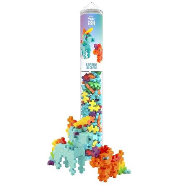 Bring color to life with the Plus-Plus Rainbow Unicorns! Packed with 100 bright pieces and a step-by-step guide, kids can build a; unicorn and its colorful baby. A magical set that sparks imagination and celebrates creativity!